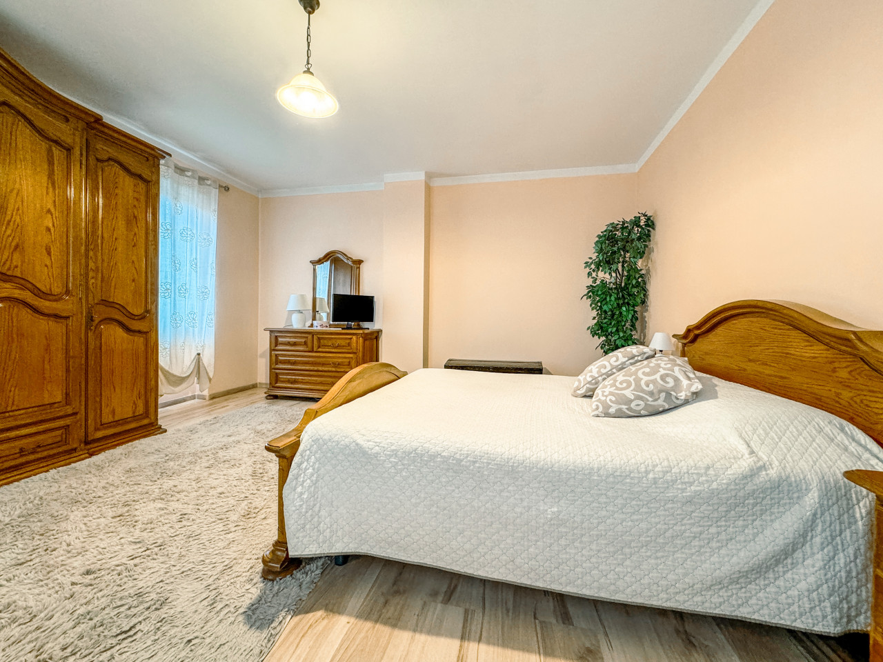 Das Anwesen erstreckt sich über drei Etagen und bietet eine durchdachte und funktionale Aufteilung der Räume. Im Erdgeschoss führt ein geräumiger Eingangsbereich in eine helle und großzügige Wohnküche, die sich perfekt für gesellige Treffen eignet, sowie in ein gemütliches Wohnzimmer. Im ersten Stock befinden sich zwei Schlafzimmer, die Komfort und Privatsphäre bieten, sowie ein gut ausgestattetes Badezimmer. Der zweite Stock bietet zwei weitere Schlafzimmer, ideal für Gäste oder als Arbeitszimmer, und ein zusätzliches Badezimmer. Das Haus verfügt außerdem über zwei Balkone, einen Keller und einen gepflegten Garten, der grüne Oasen der Ruhe bietet, sowie ein Nebengebäude, das als Werkzeugschuppen genutzt werden kann. Die Anlagen wurden kürzlich überholt, und das Dach befindet sich in einem ausgezeichneten Zustand, sodass das Haus sofort beziehbar ist.