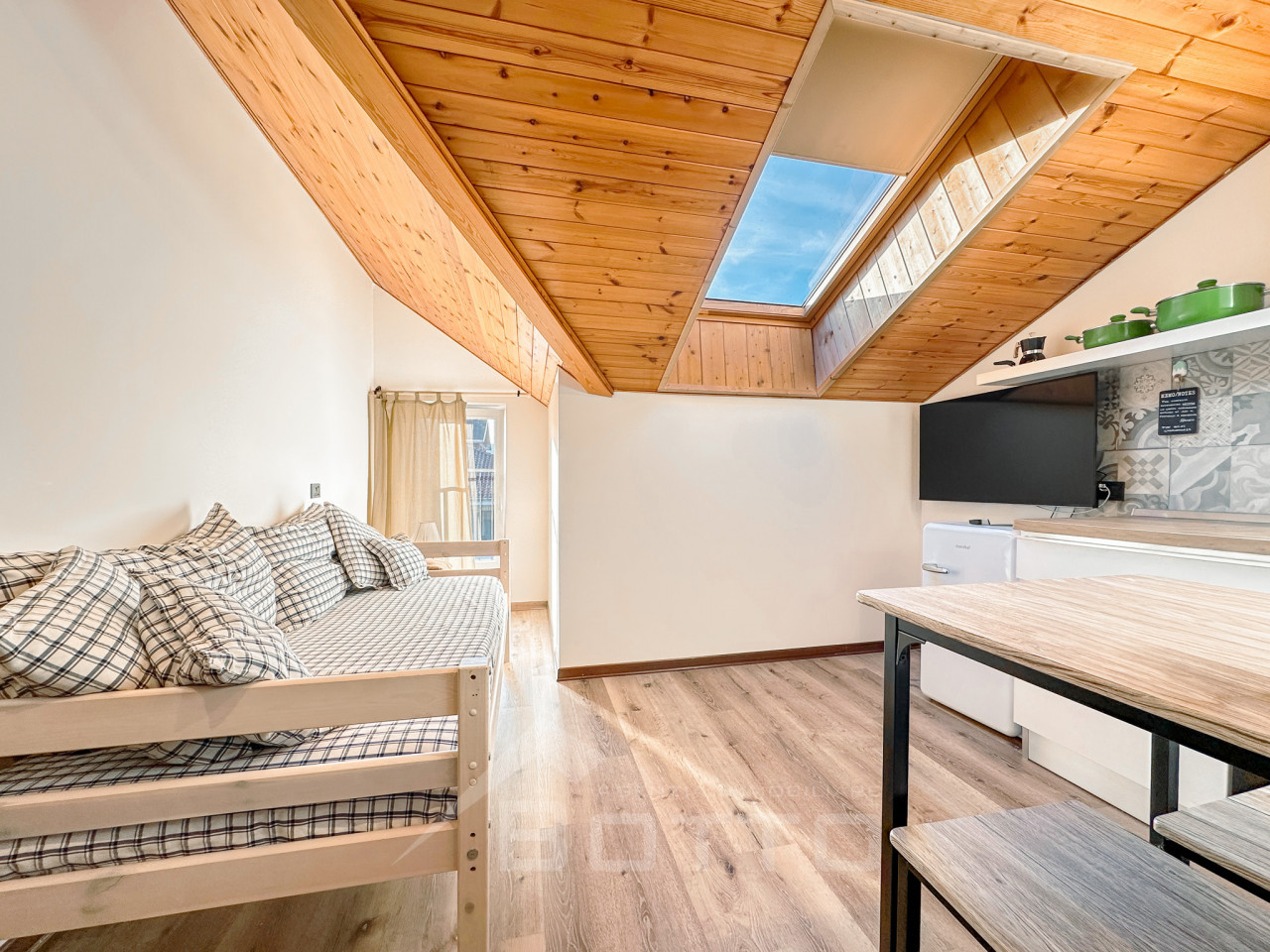 On the first floor (with independent entrance), there are two distinct one-bedroom apartments, each consisting of: